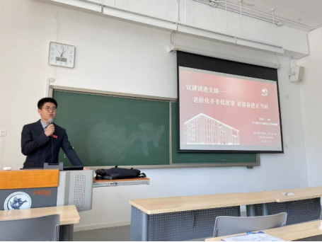宣讲会上,王赛讲师带领参会党员学习了人口老龄化和低欲望青年之间的关系,并对未来为我们应该怎么做提出了建议。习近平主席在中国共产党第二十次全国代表大会上作的报告中指出“面对人口老龄化挑战,实施积极应对人口老龄化国家战略。”“青年强,则国家强。当代中国青年生逢其时,施展才干的舞台无比广阔,实现梦想的前景无比光明。”由此引出宣讲内容。