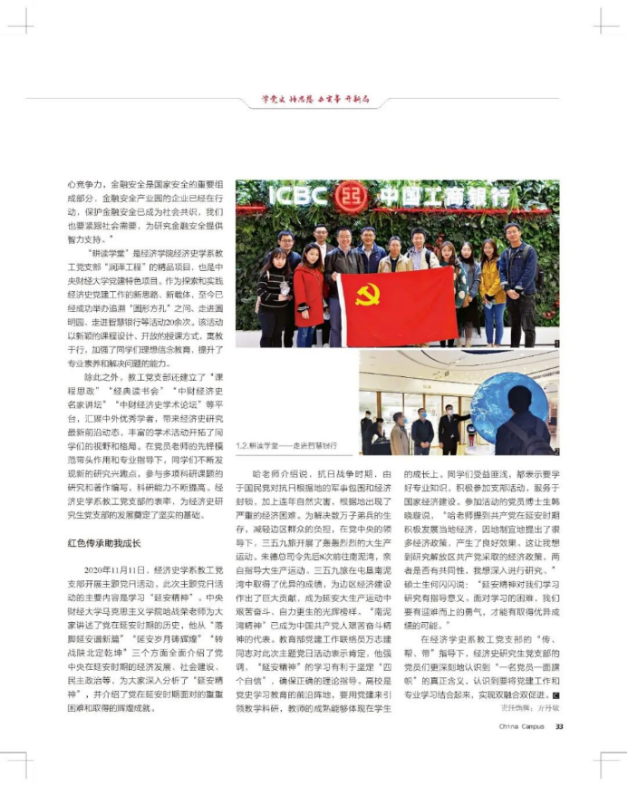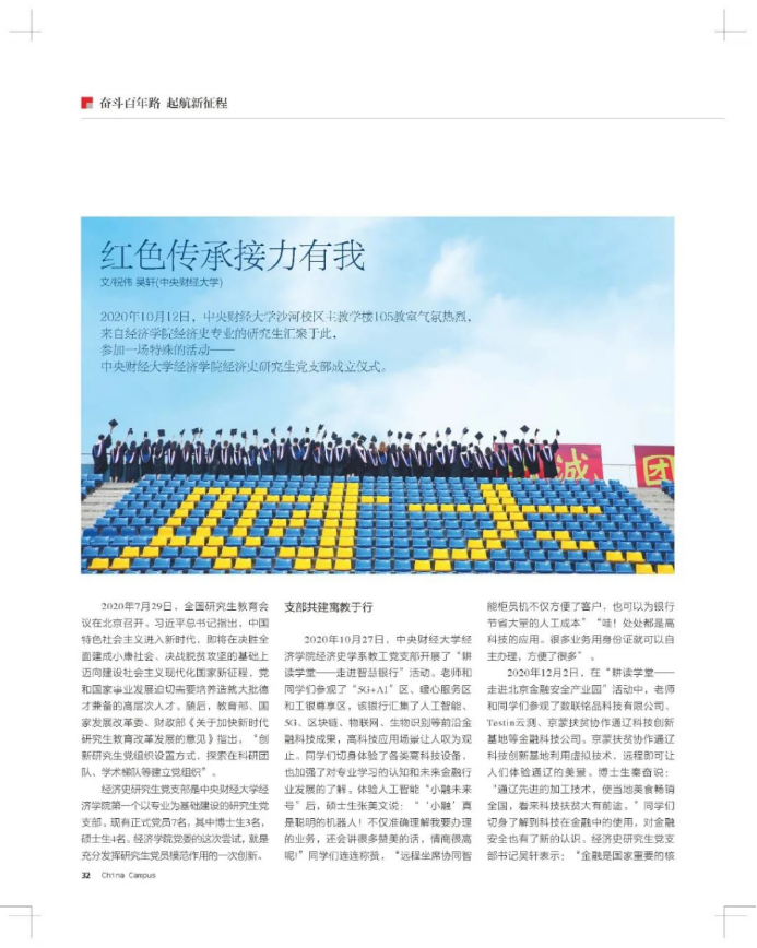 《大学生》杂志第316期以“红色传承接力有我”为题,报道了永利官网经济史研究生党支部。现将全文转载如下。